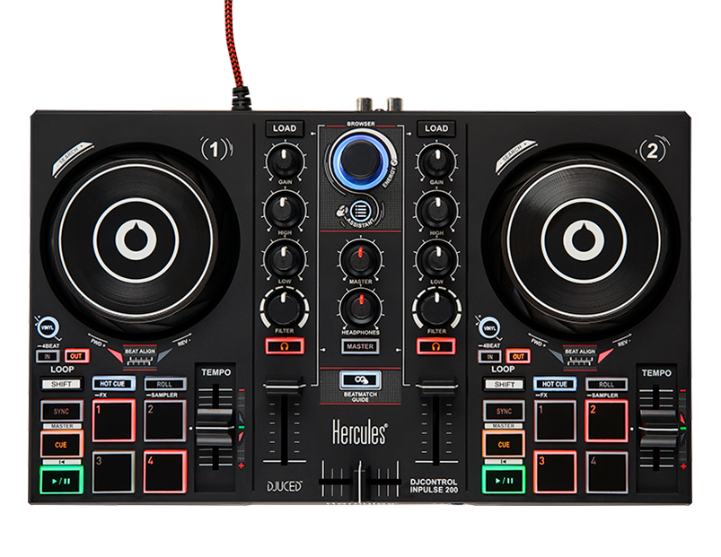 Explora el DJing con el Hércules DJ Control inpulse 200 MK2. Compatible con Serato DJ Lite y DJUCED, ofrece STEMS, Beatmatch Guide, 8 pads, y tutoriales de la DJ Academy para aprender y divertirse mezclando